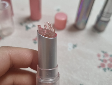 | 외관 디자인 | 투명한 느낌의 케이스 | 핑크색의 얇고 기다람 | 일반 립밤 | 홀로그램 |